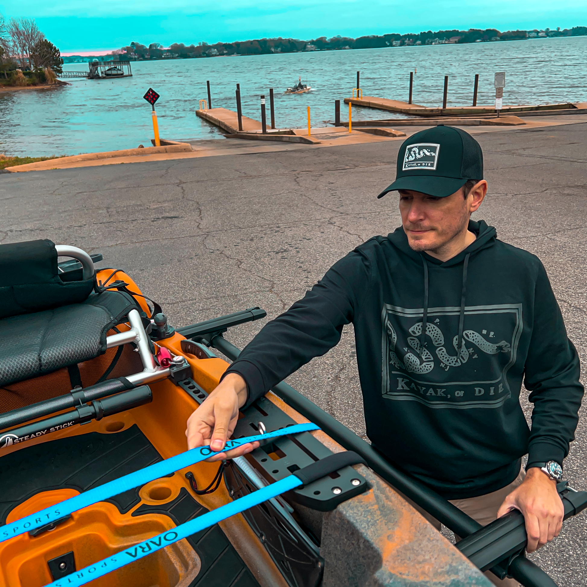 Kayak, or Die.™ - Join the revolution. Inspired by Ben Franklin's famous 1754 cartoon - "Join, or Die" snake woodcut.